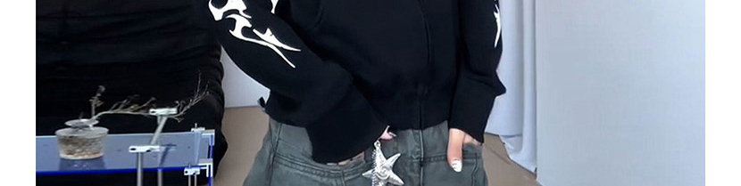 - Top: Slim-fit long sleeve hooded cardigan in soft autumn fabric with retro street style design.