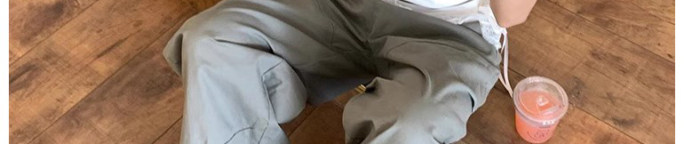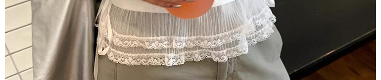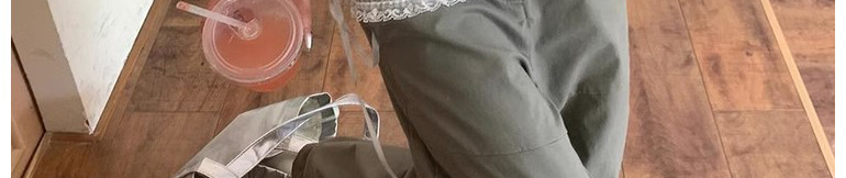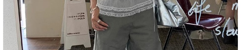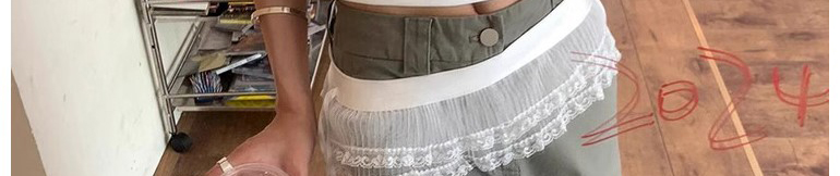 - Pants: Wide-leg straight cargo pants with lace panel detailing, loose-fit spring fabric, casual vintage style.