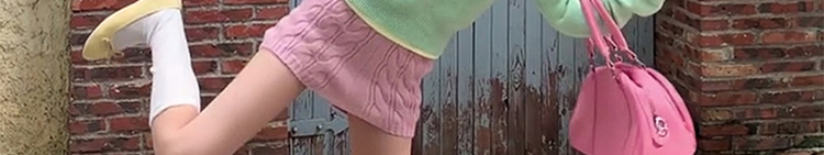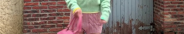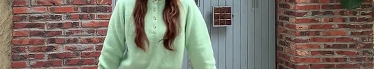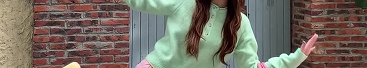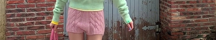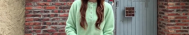 - Top: Short Henley-style knit sweater with soft, cozy texture, loose-fit silhouette, early autumn fabric.
