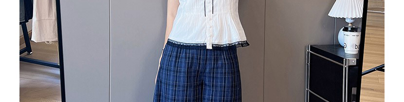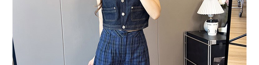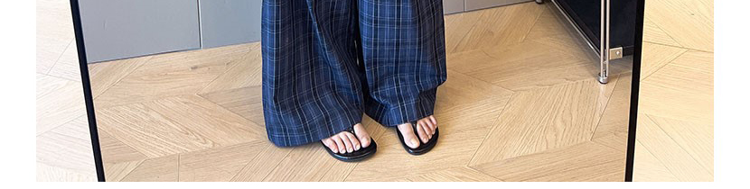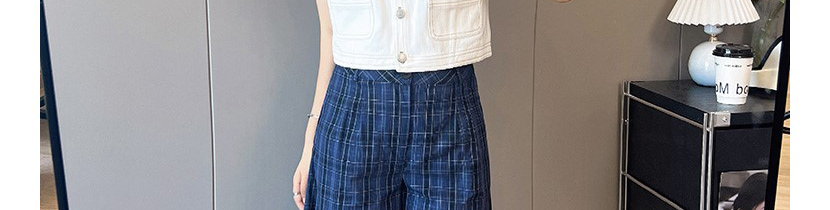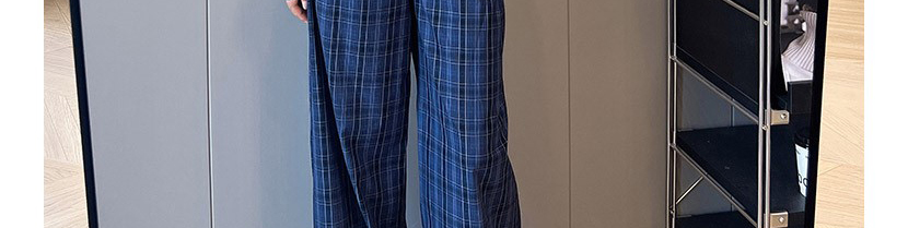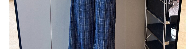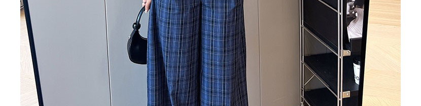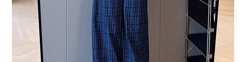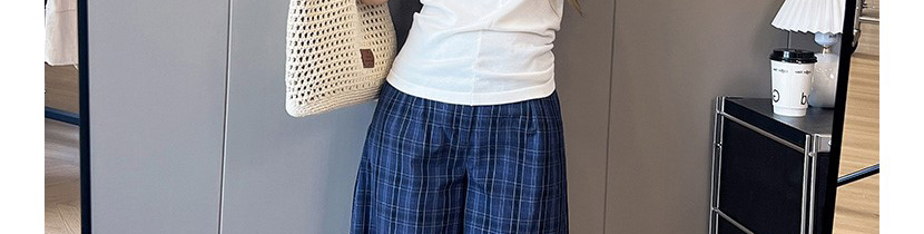 - Pants: Relaxed-fit plaid wide-leg pants, soft autumn fabric with vintage navy pattern.