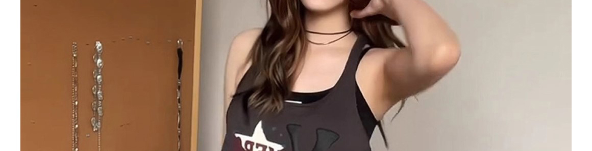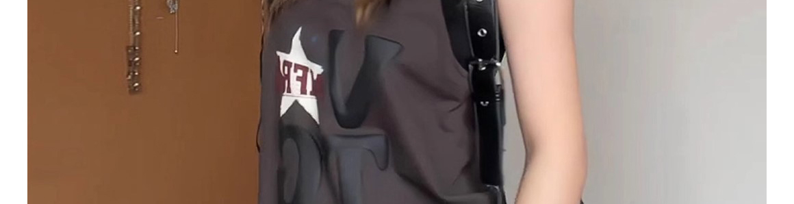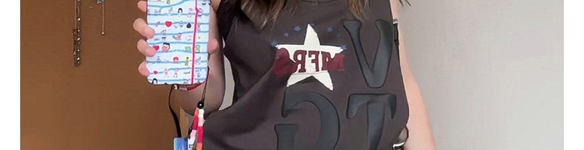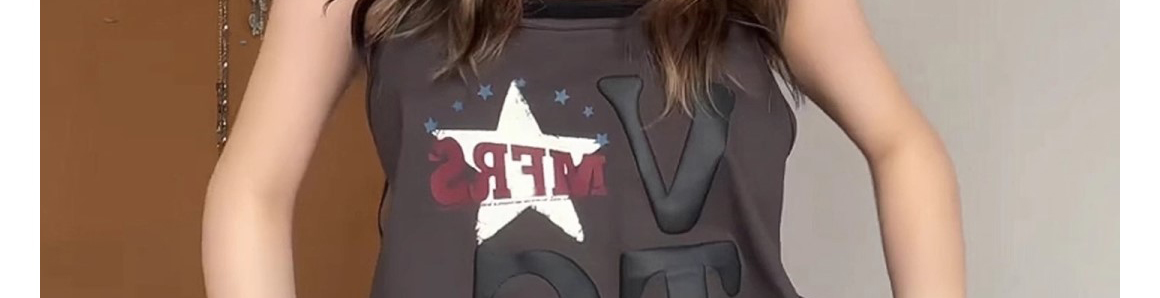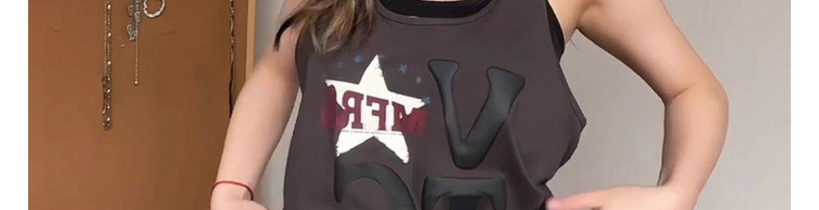 - Top: Sleeveless printed vest with loose fit, soft summer fabric, and retro Y2K-inspired design.