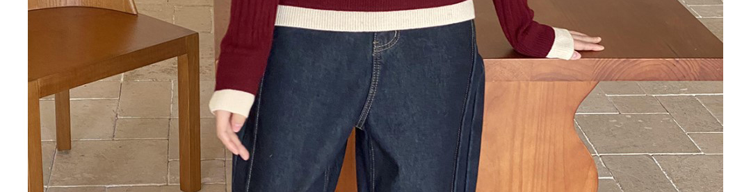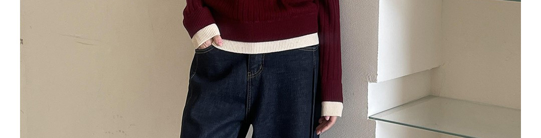 - Top: Autumn knit sweater with faux two-piece design, sheepwool texture, stylish turn-down collar, soft and cozy fabric.