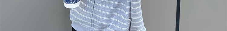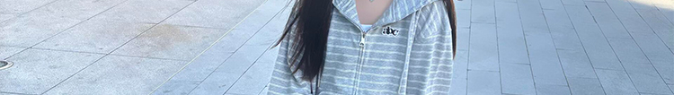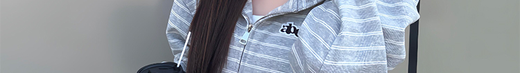 - Top: Heavyweight striped hoodie with zip closure, loose-fit, soft autumn fabric, casual design.