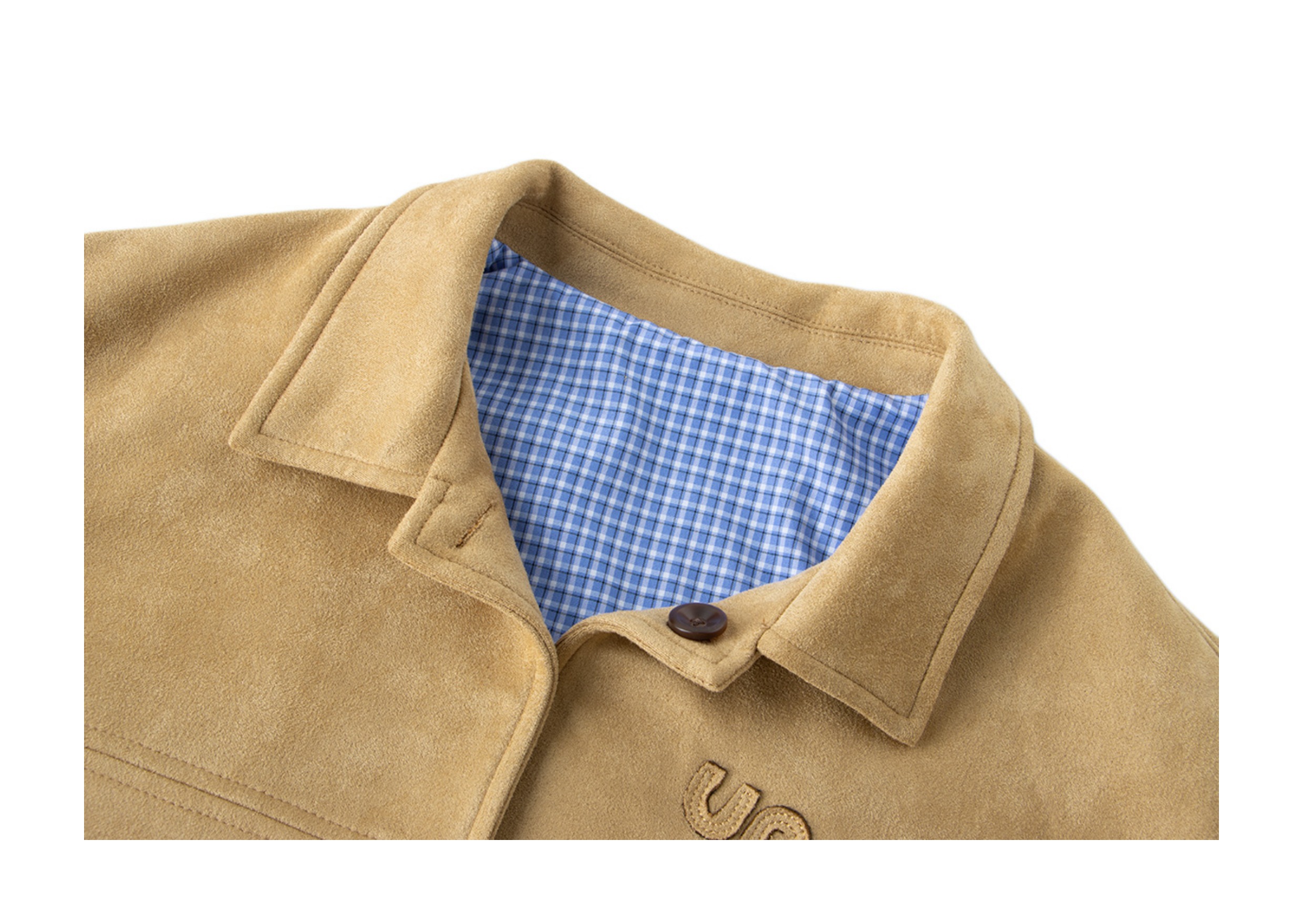 - Jacket: Reversible suede plaid jacket with casual fit, soft spring fabric, stylish design for men and women.