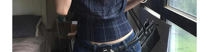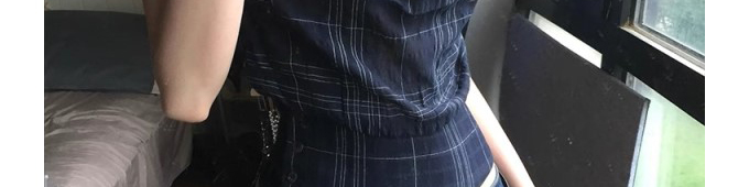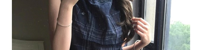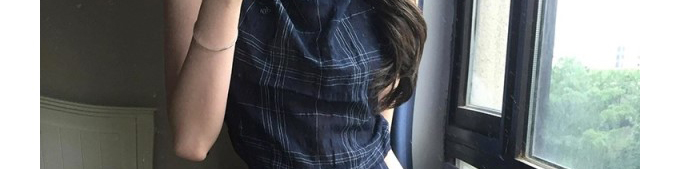 - Top: Loose-fit sleeveless tee with triangle scarf detail and plaid pattern, soft summer fabric, waist-defining fit.