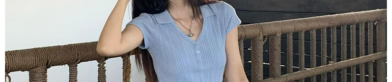 - Top: Short sleeve V-neck knit T-shirt, slim fit, vintage Y2K style with a modern twist.