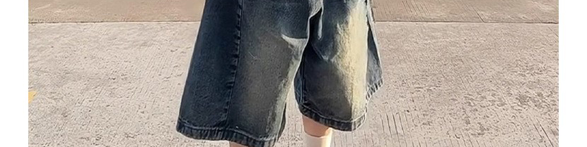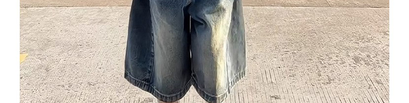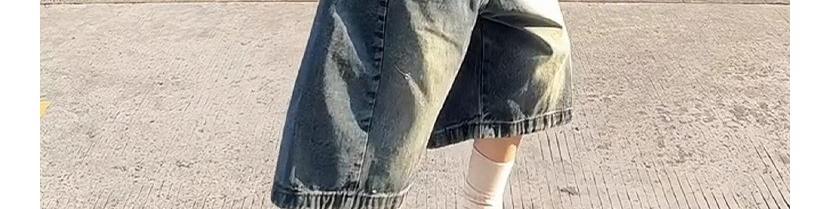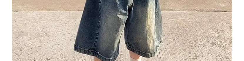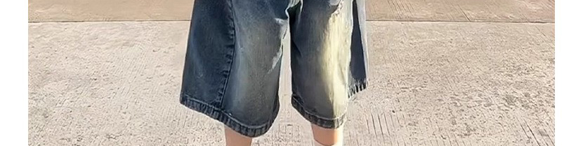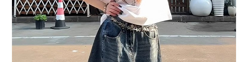 - Pants: Blue washed denim cropped pants, relaxed straight-leg fit, soft breathable summer fabric.