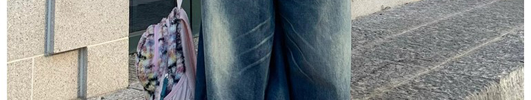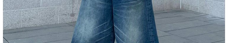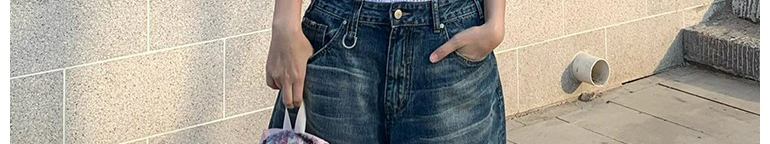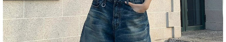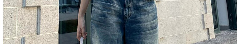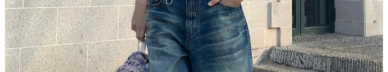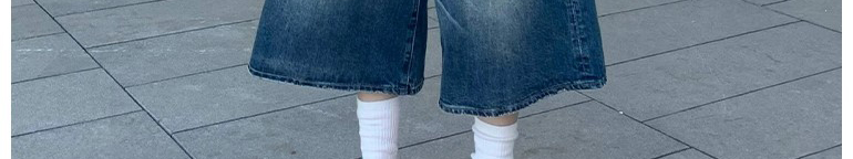 - Pants: Loose-fit washed denim with high waist, cropped wide-leg style, soft summer fabric.