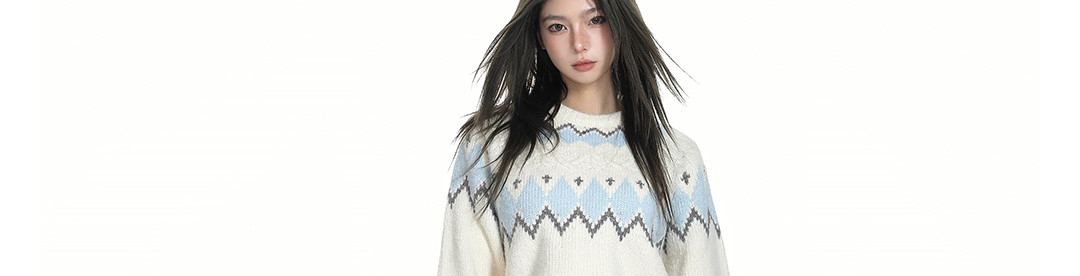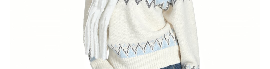 White Isle round neck knit sweater. Loose fit, cozy and perfect for autumn.