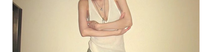 - Top: Lightweight halter tank with V-neck, semi-sheer summer fabric, sleeveless design.