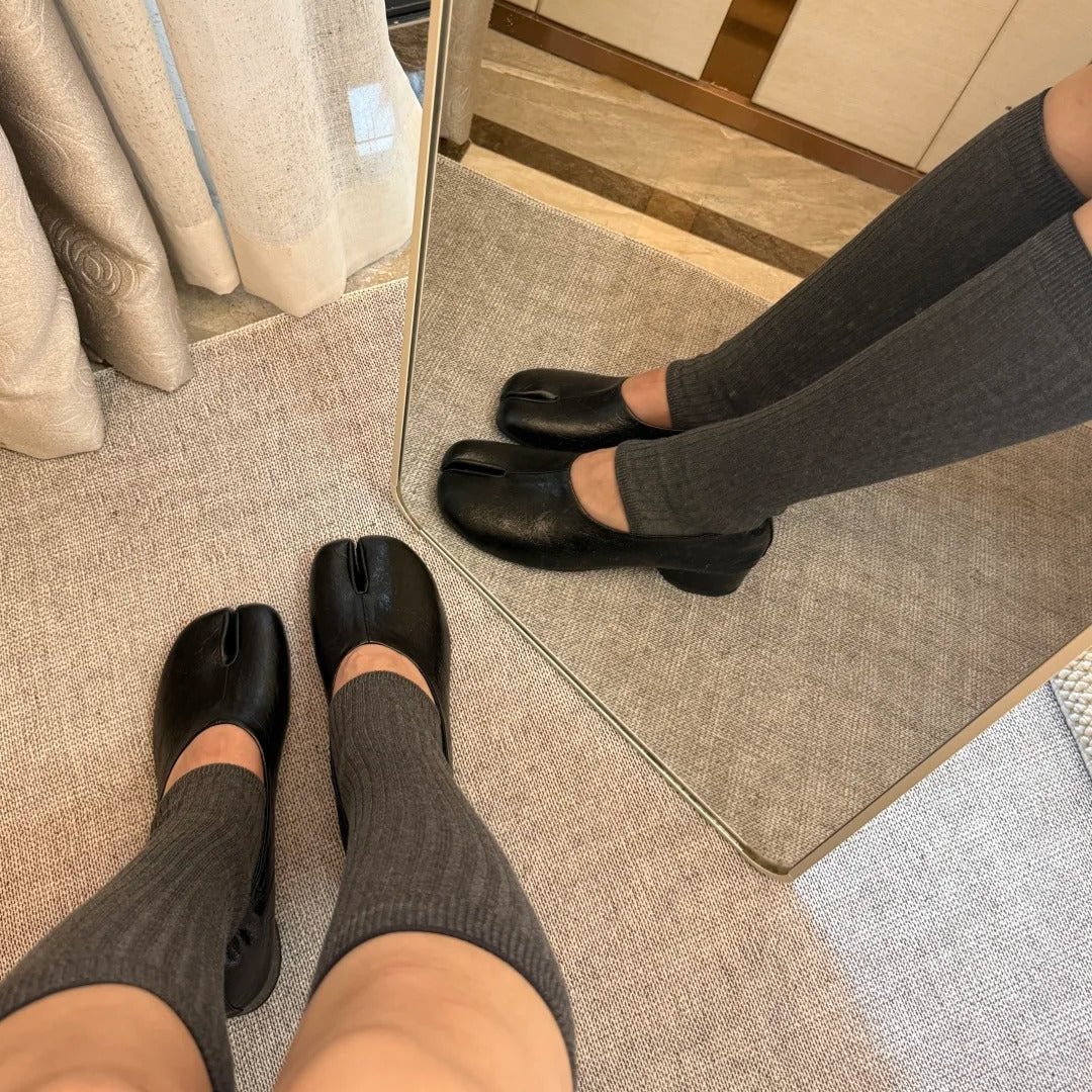 • Die charakteristische geteilte runde Zehenpartie verleiht ein skulpturales Detail