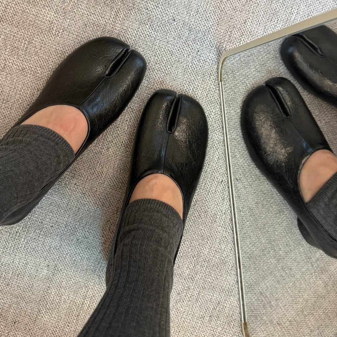 Damen Mary Jane Tabi aus Crinkle-Leder in Schwarz