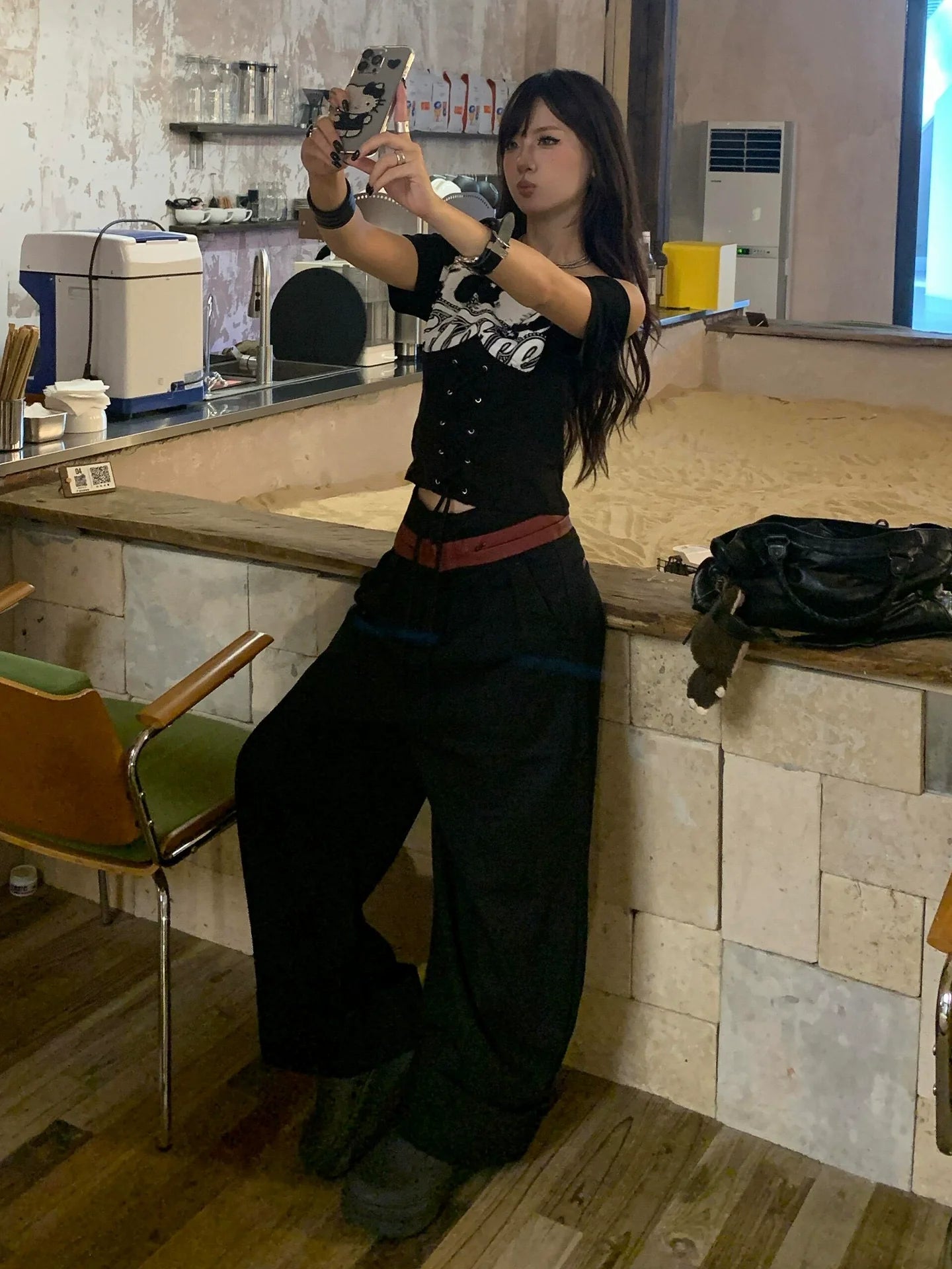 Y2K Hot Girl Off-Shoulder Lace-Up Corset Tee Slim Fit Cropped Summer Top