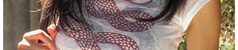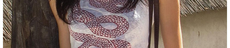- Top: Slim-fit short sleeve tee with snakeprint pattern, structured shoulders, lightweight summer fabric.