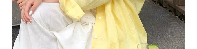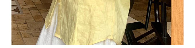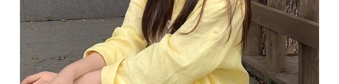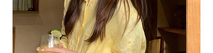- Top: Lightweight yellow linen shirt with breathable and anti-UV fabric.
