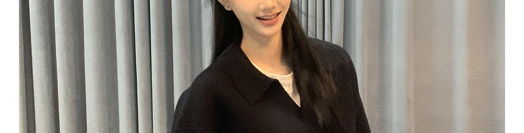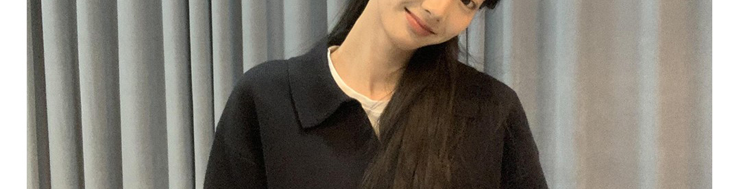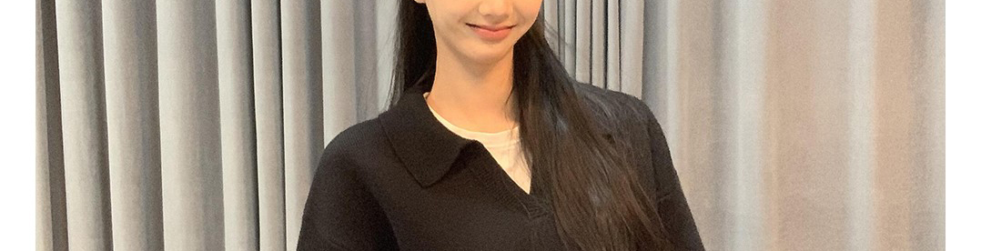 - Top: Loose-fit V-neck knit sweater with long sleeves, soft autumn fabric, versatile design.