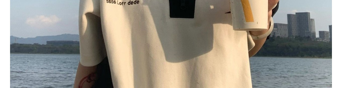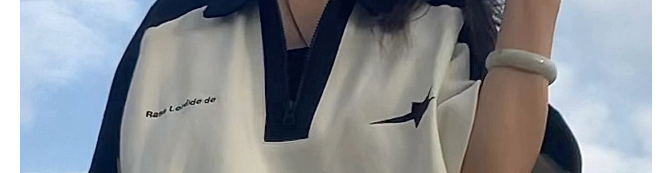 - Top: Short-sleeve polo shirt with colorblock design, breathable summer fabric, classic collar.