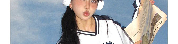 - Top: Colorblock V-neck pullover sweatshirt with oversized relaxed fit.