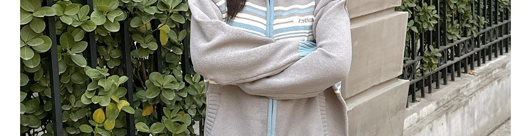 American Contrast Stripe Zip Knit Cardigan