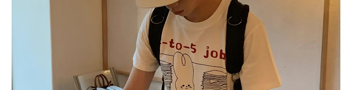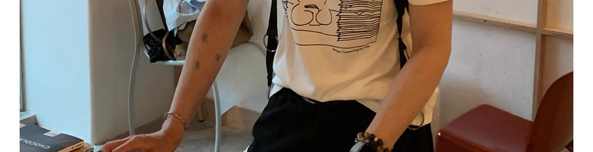 - Top: Short sleeve cotton T-shirt with creative print, slim fit, casual American summer style.