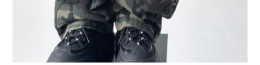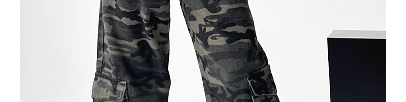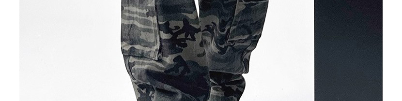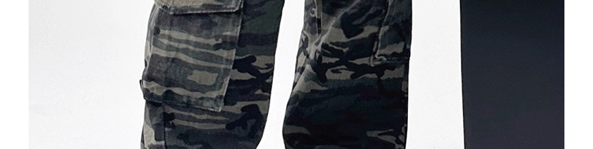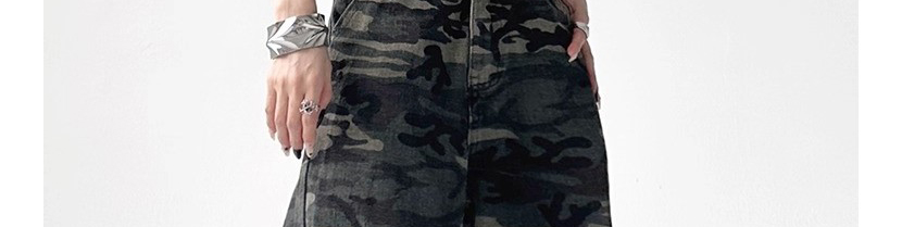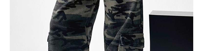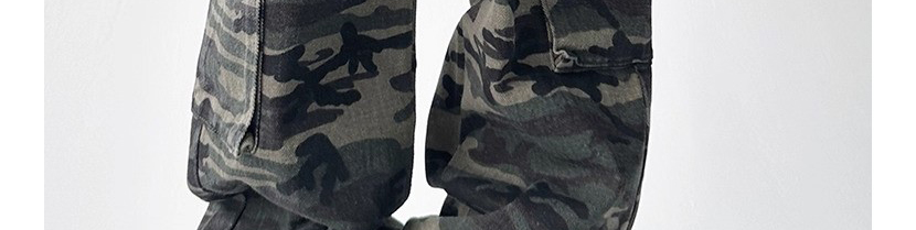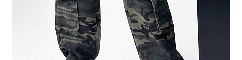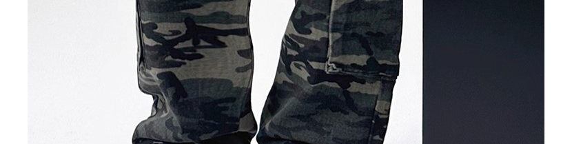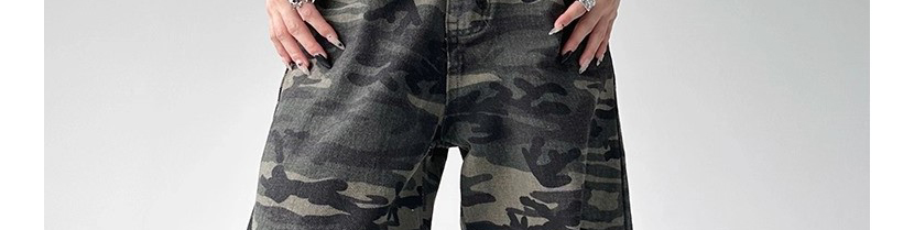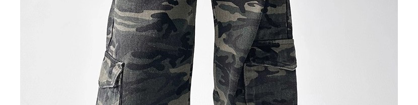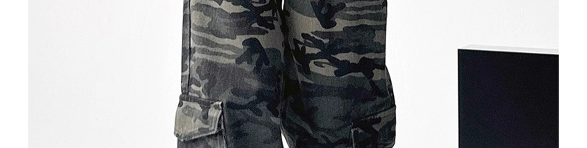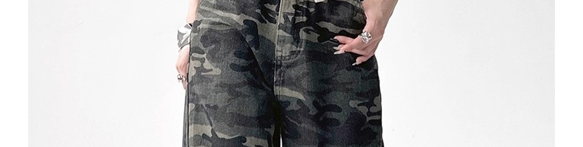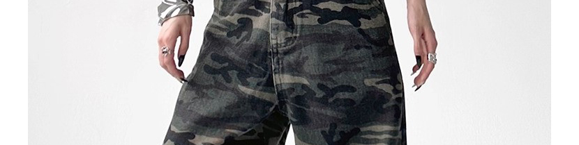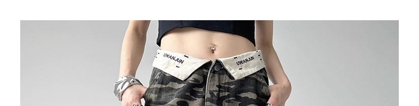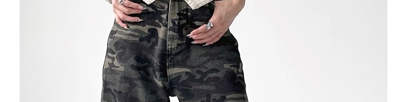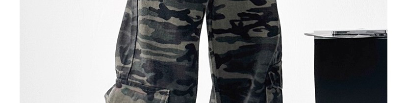 - Pants: High-waist wide-leg denim pants with cuffed hem and camouflage print, soft summer fabric.