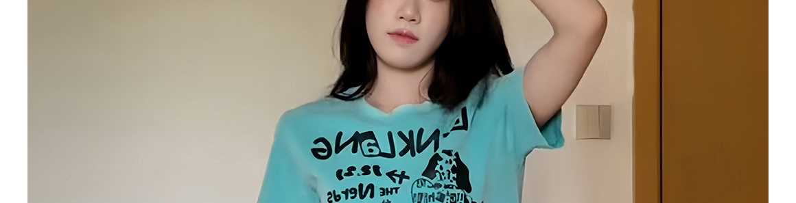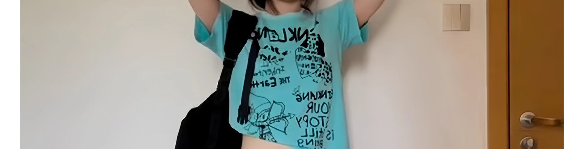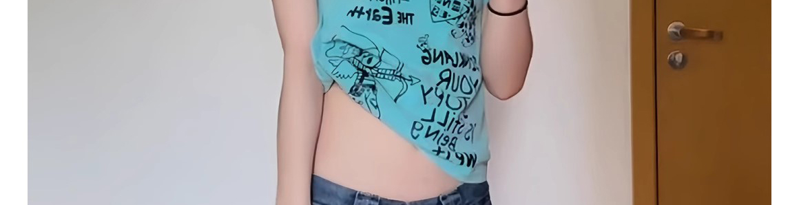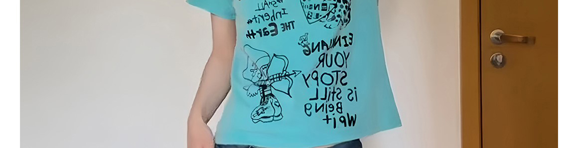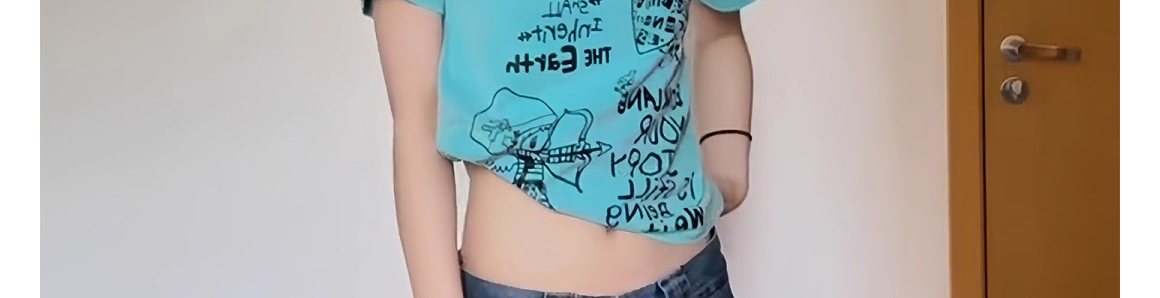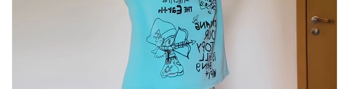 - Top: Short sleeve T-shirt with Cupid print, slim fit, playful summer street style.