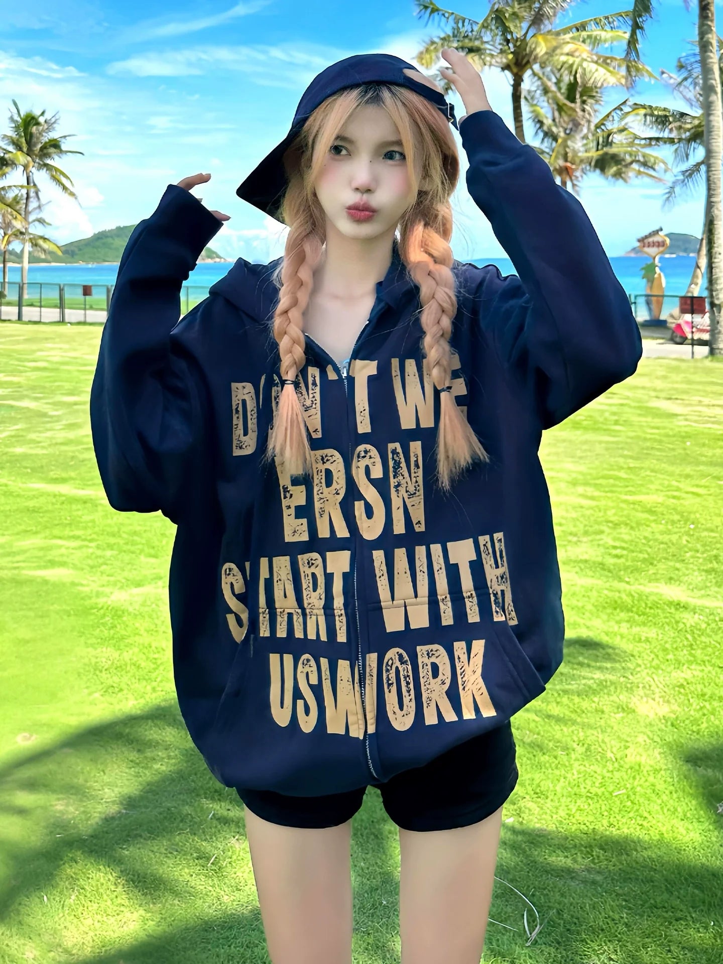 - Top: Autumn-winter Doberman hoodie, zip-up front, letter print design, heavyweight cotton blend, American streetwear style, cozy loose fit.