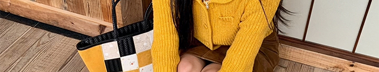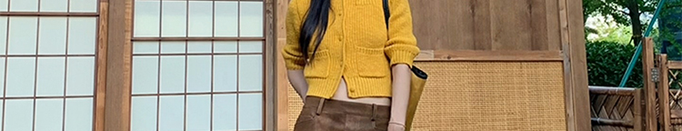 - Cardigan: Vintage-inspired doll collar knit cardigan with loose fit, soft autumn/winter fabric.