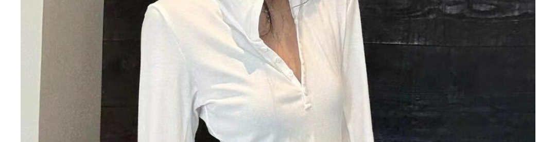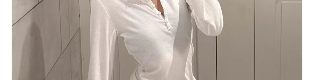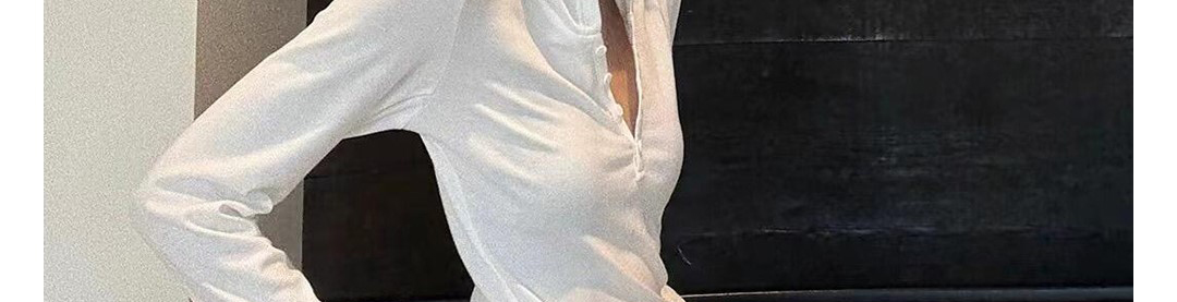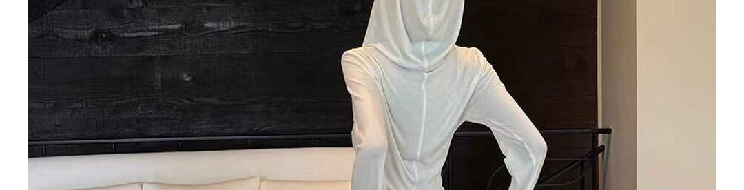 - Top: Slim-fit long sleeve tee with hood and classic Henley neckline in crisp white, soft cotton blend fabric.