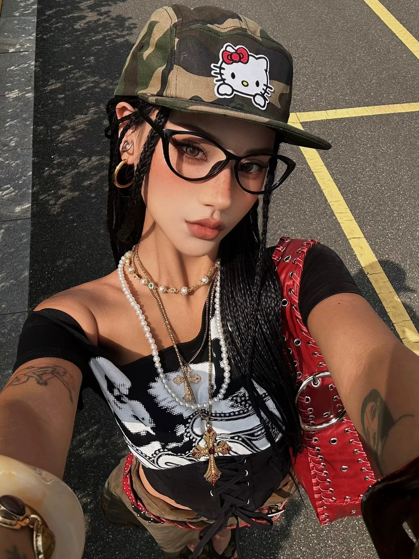 - Look: Ideal for streetwear, festival outfits, casual Y2K styling, and girly layering looks.
