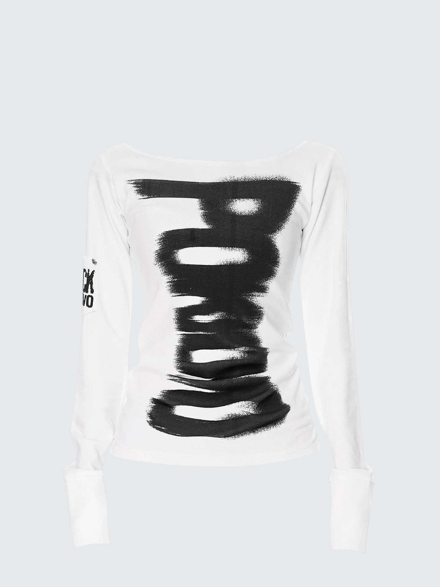 - Top: Slim-fit long sleeve tee with letter print and one-shoulder design, early autumn fabric, trendy Y2K style.