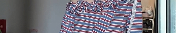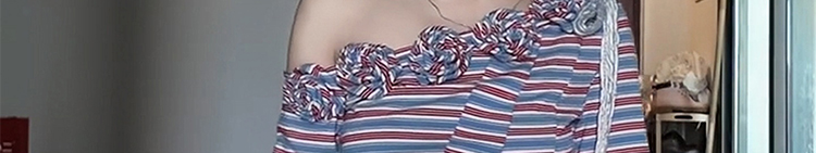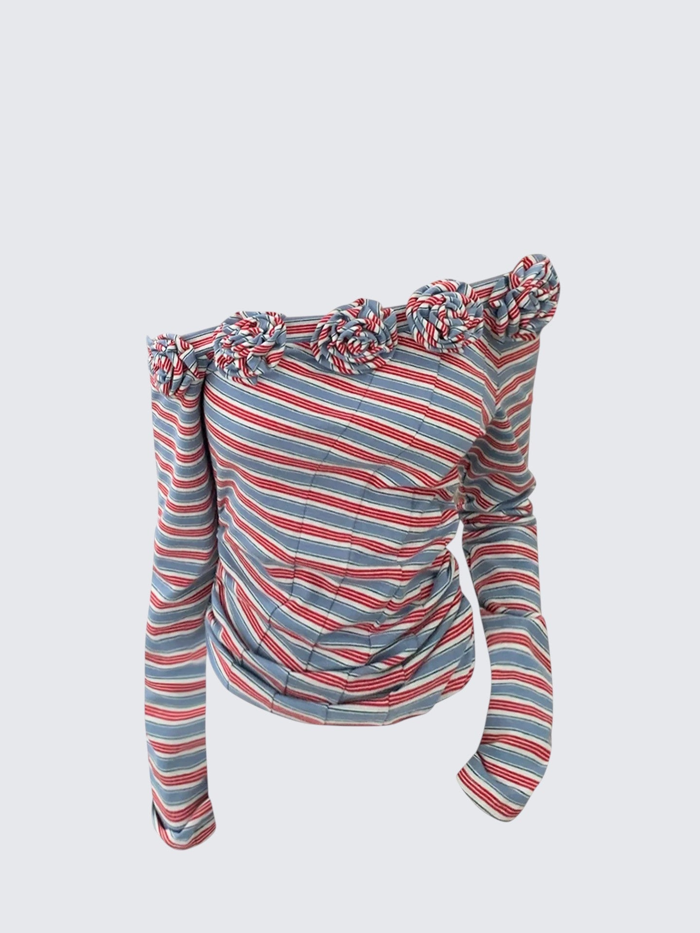 - Top: One-shoulder long sleeve tee with 3D floral stripes, slim-fit silhouette, autumn fabric.