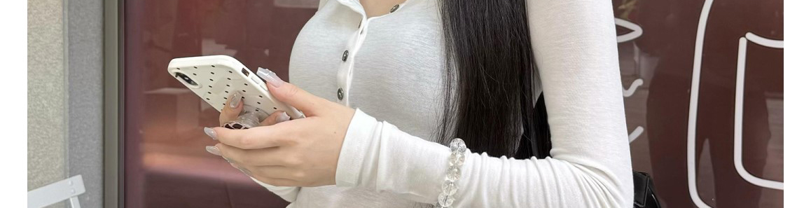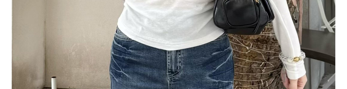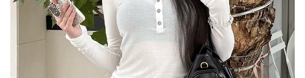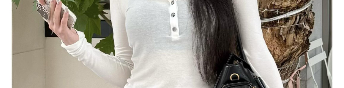 - Top: Slim-fit long sleeve tee with U-shaped Henley neckline, soft autumn fabric, chic design.