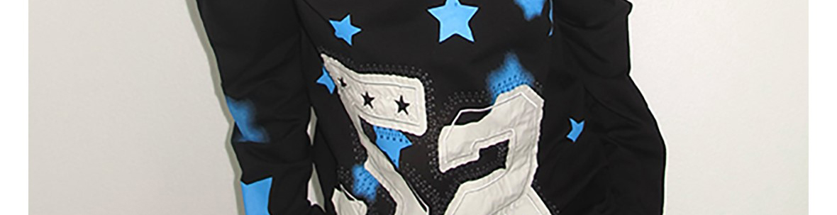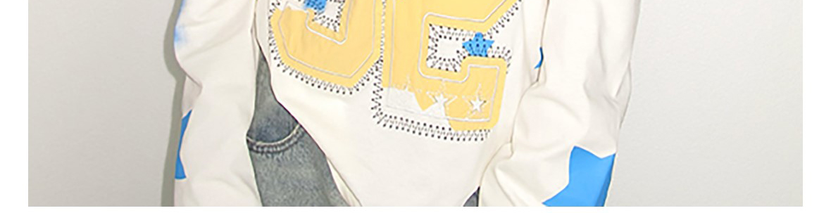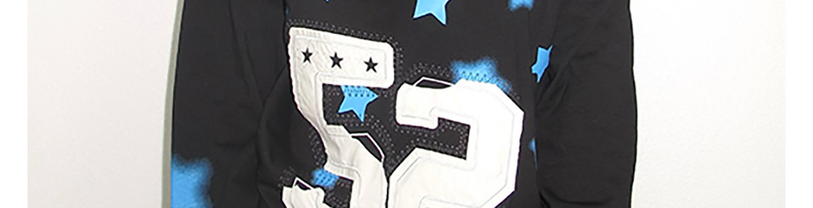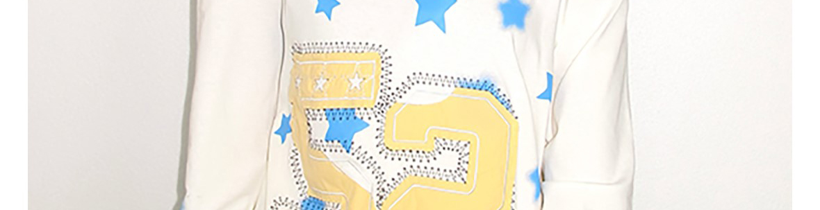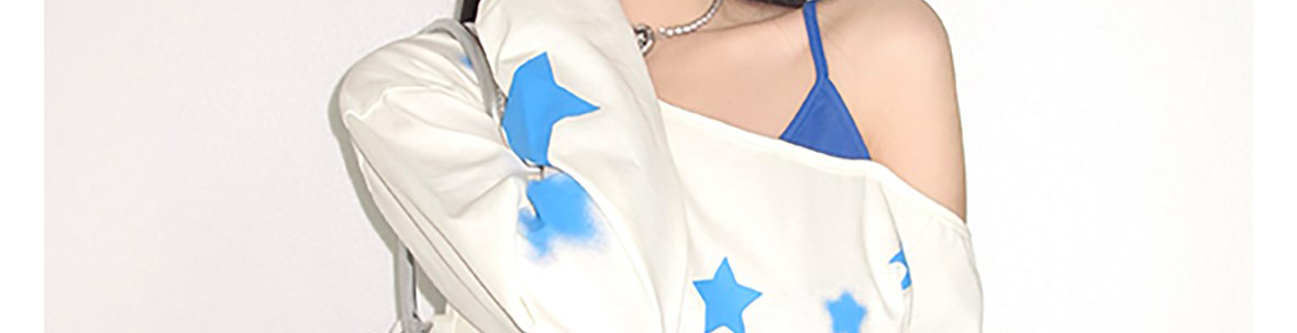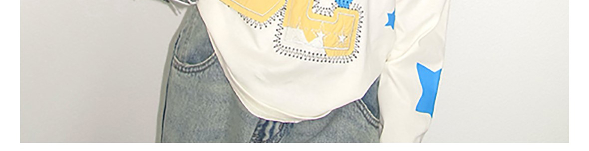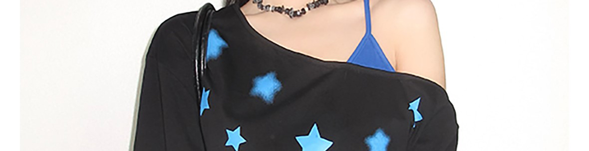 - Top: Long-sleeve asymmetrical tee with star print, loose fit and early autumn soft fabric.