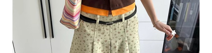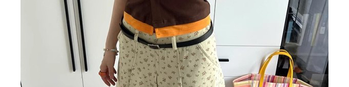 - Top: Slim-fit short sleeve tee with faux two-piece design, colorblock accents, soft summer fabric.