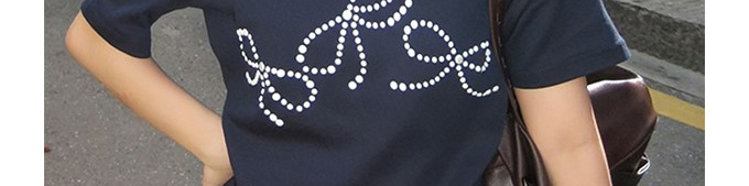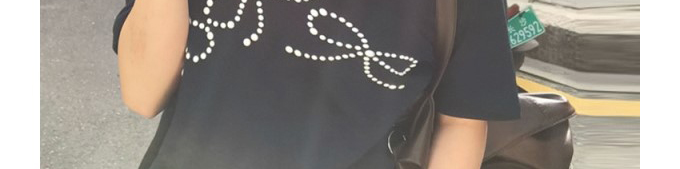 - Vintage-inspired t-shirt with pearl and rhinestone accents.