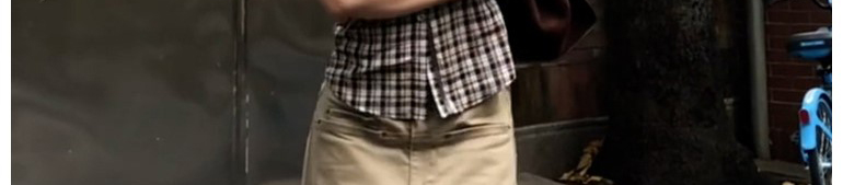 - Top: Plaid short sleeve shirt with classic collar, slim fit, soft cotton fabric.