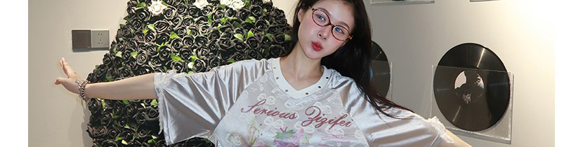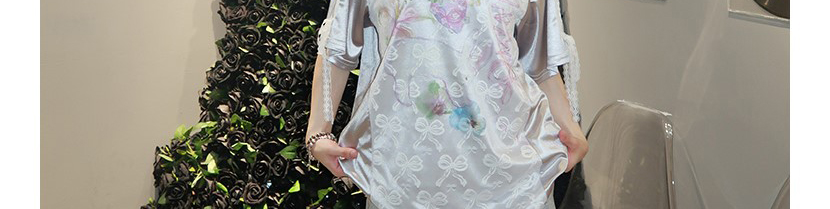 American Vintage Satin Lace Bow Short Sleeve T-Shirt