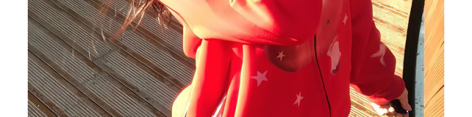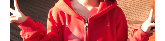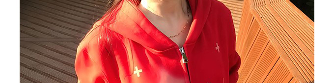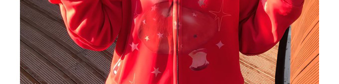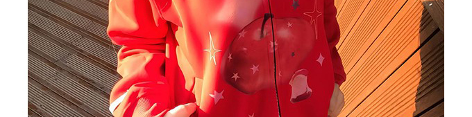 Creative apple print red hoodie. Loose fit, casual and stylish for autumn wear.