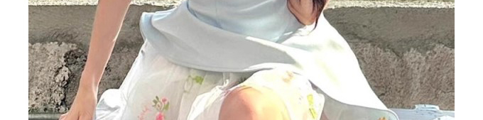 - Dress: Sleeveless summer dress with fitted waist, puffed skirt and asymmetrical hem, soft breathable fabric.