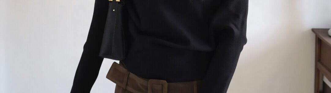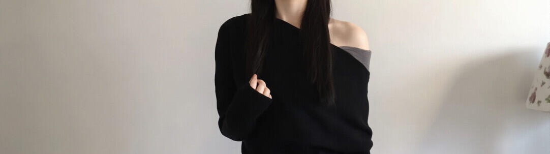 Old-money style contrast knit sweater with batwing sleeves and off-shoulder detail. Luxurious and effortlessly stylish.