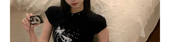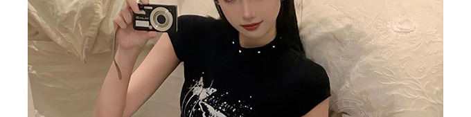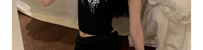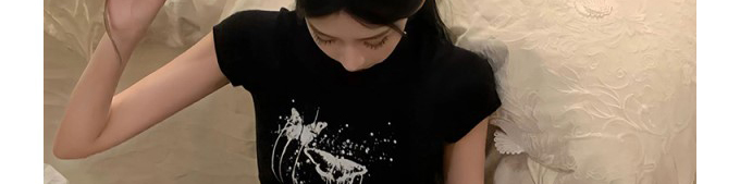 - Top: Black short-sleeve crop top with butterfly print and back cutout, creating a daring Y2K statement.