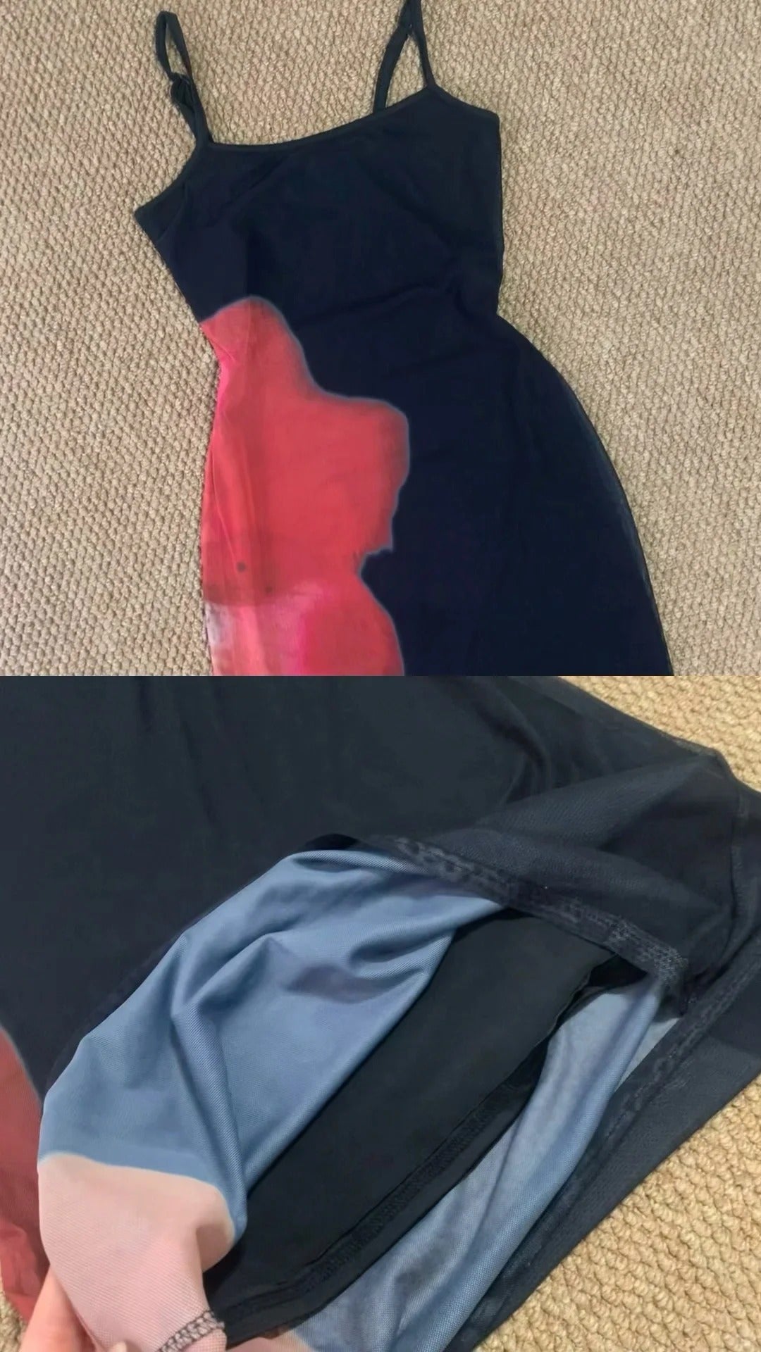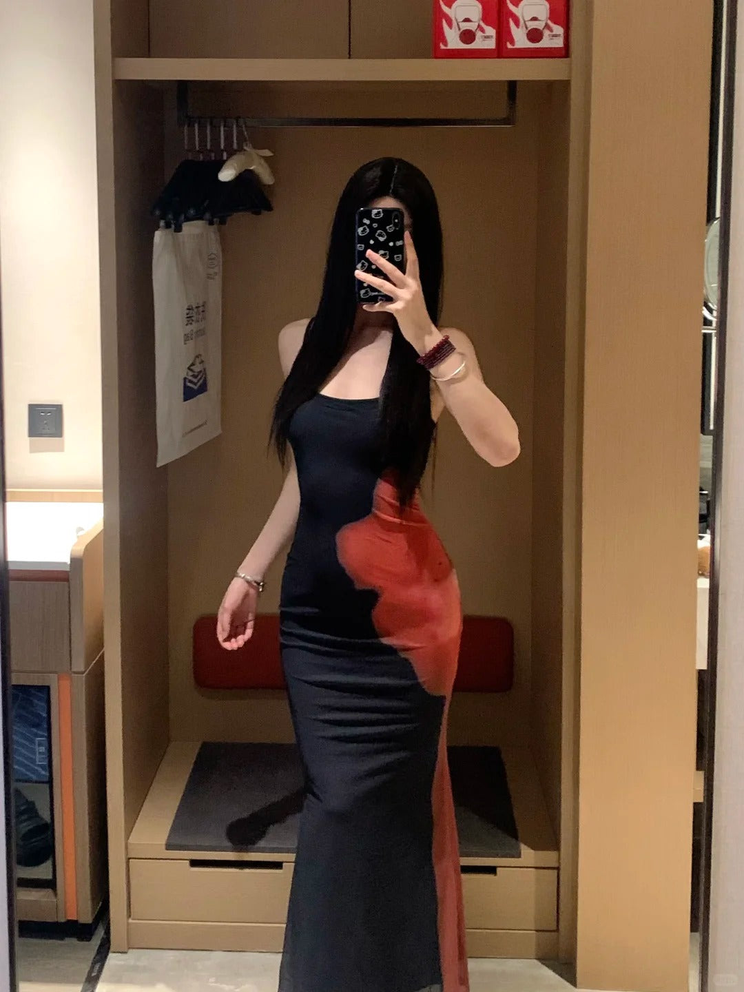 - Bottom: Long bodycon dress silhouette with a figure-hugging design, perfect for retro 90s vibes.