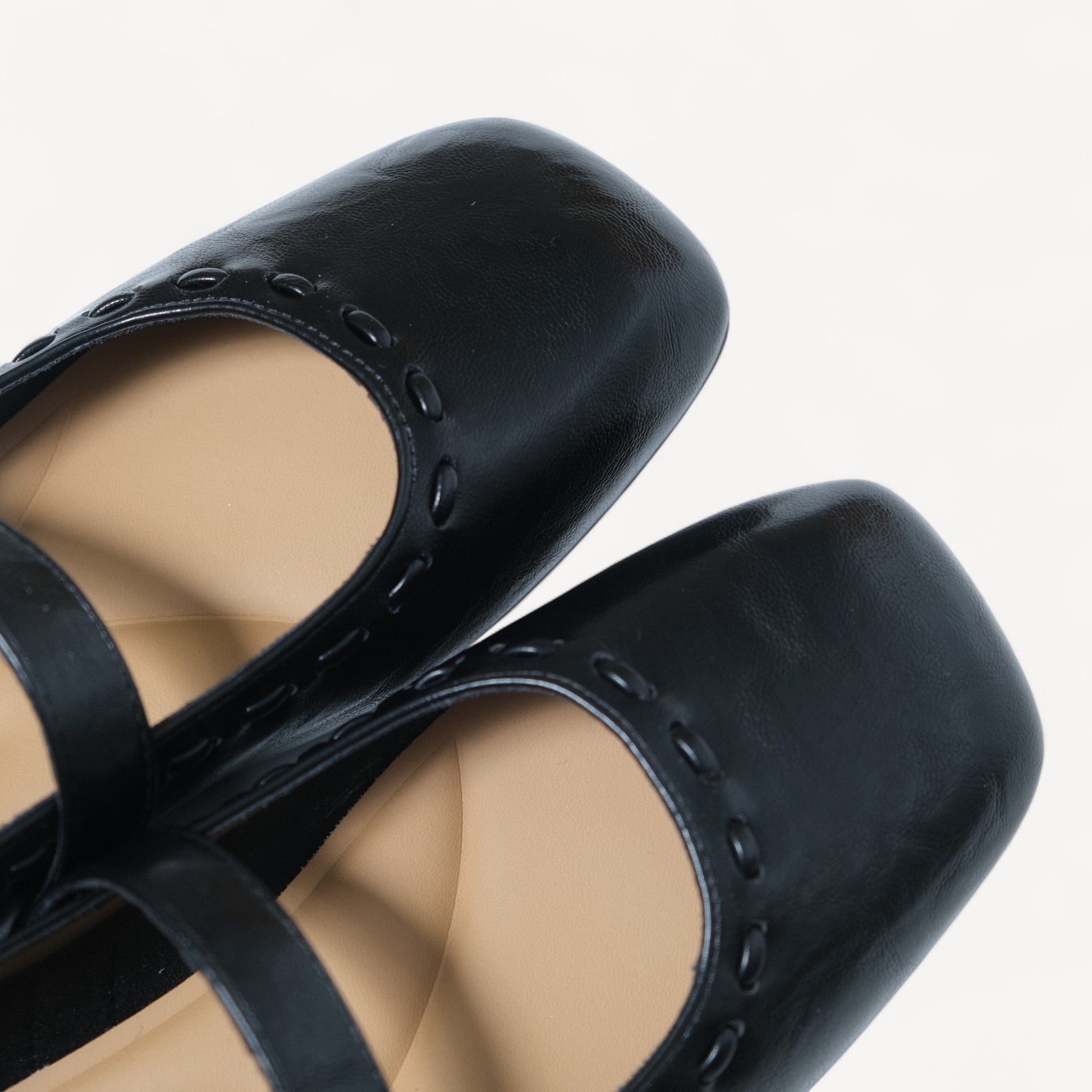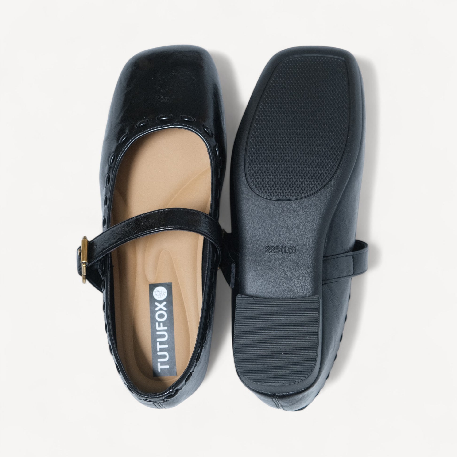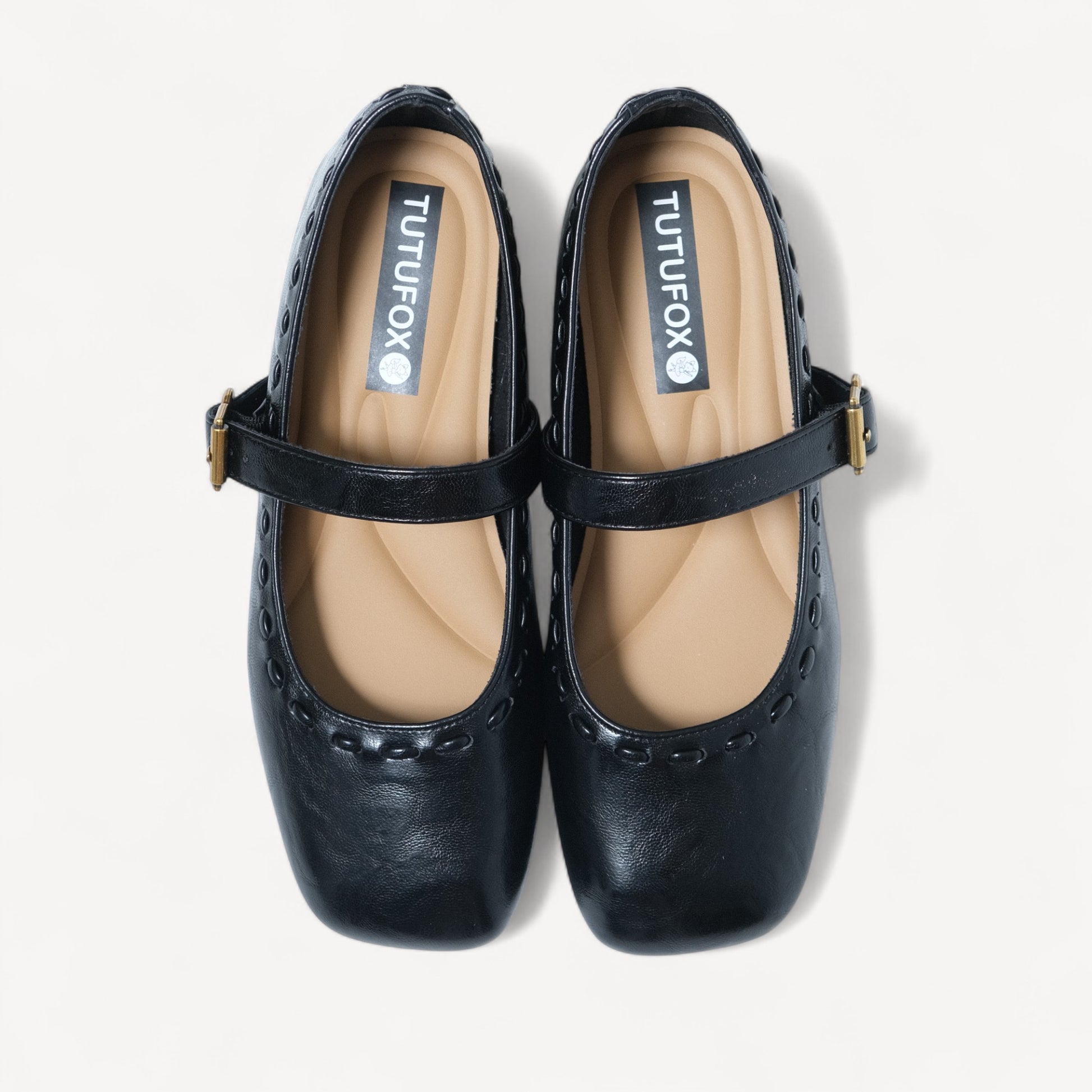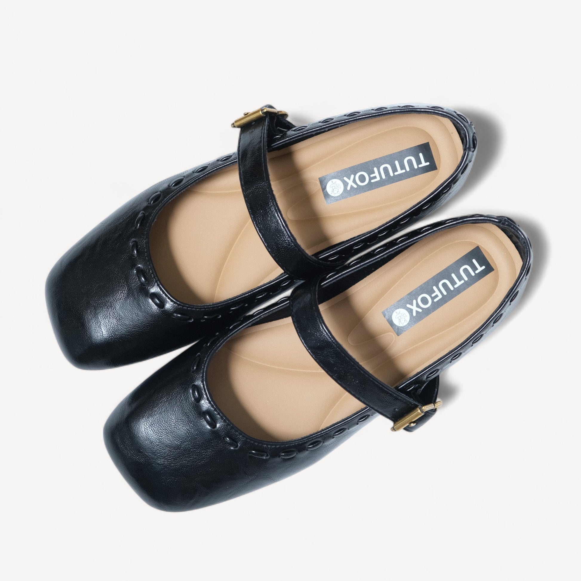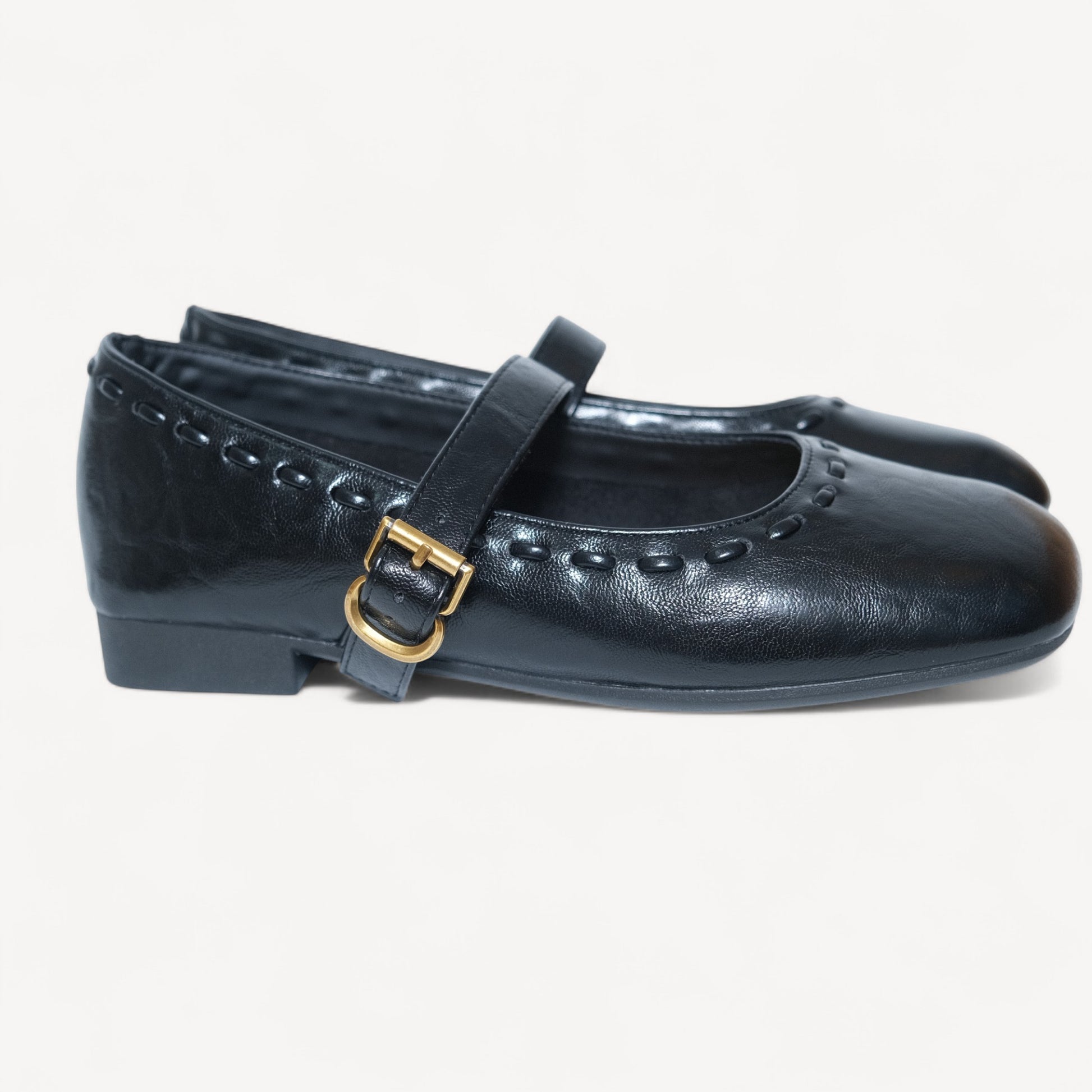 These black soft leather Mary Jane flats combine classic charm with all-day comfort. Featuring a sleek single strap, they offer a timeless look while staying versatile and modern. Perfect to wear with dresses, skirts, or pants, these flats bring effortless chic to your wardrobe.