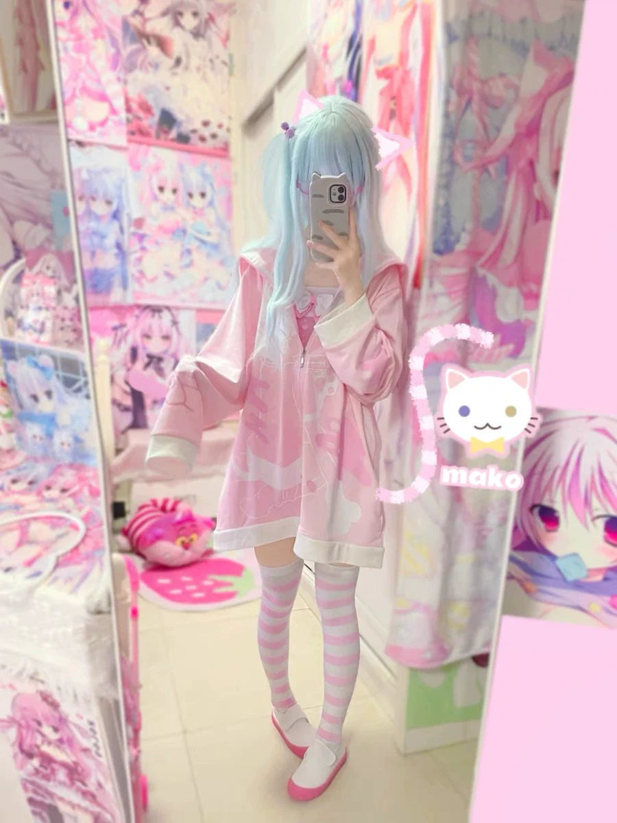 - Look: A playful (anime) inspired piece perfect for casual outings, subculture streetwear, or cool spring/autumn days, balancing cozy fleece with whimsical cat-themed details.