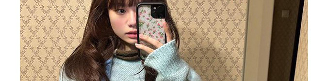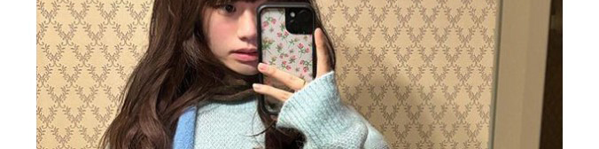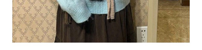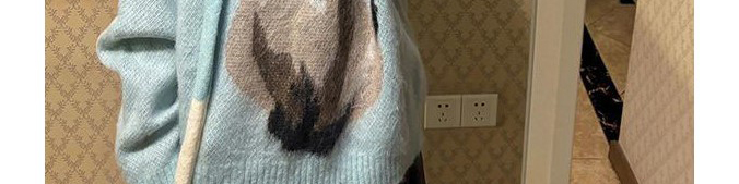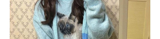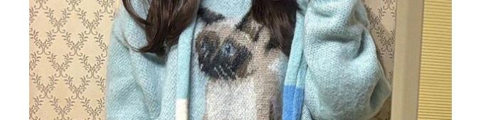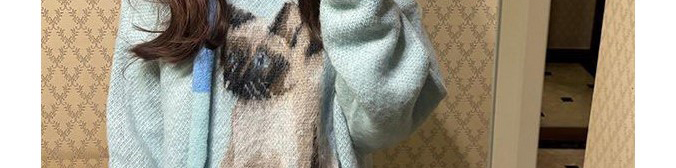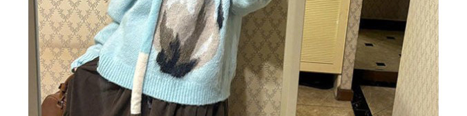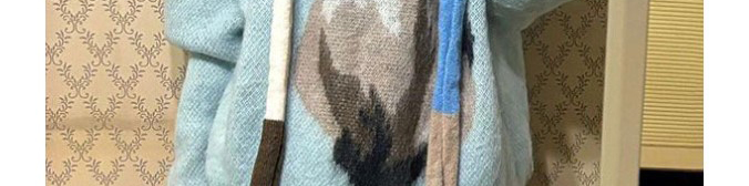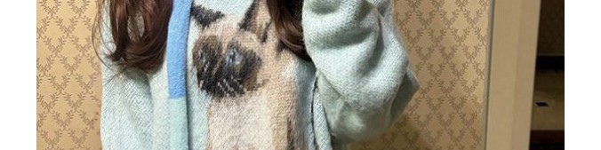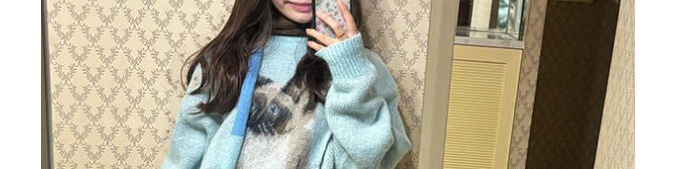 Soft mohair sweater in ice blue with cute cat print and matching scarf. Cozy, youthful, and stylishly oversized.