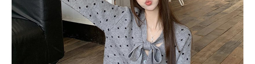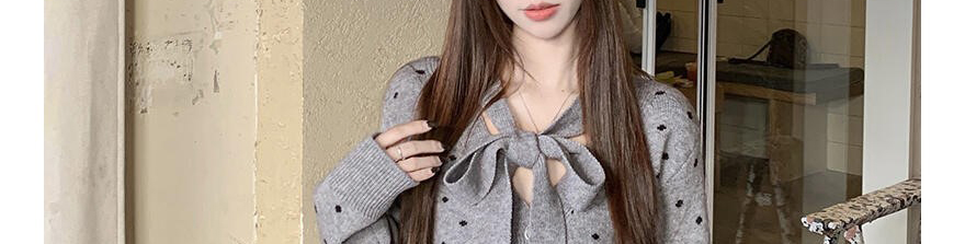 Bow Polka Dot Knit Cardigan Women