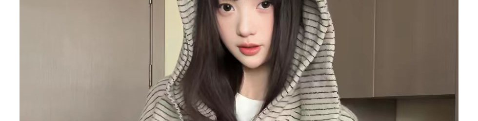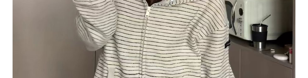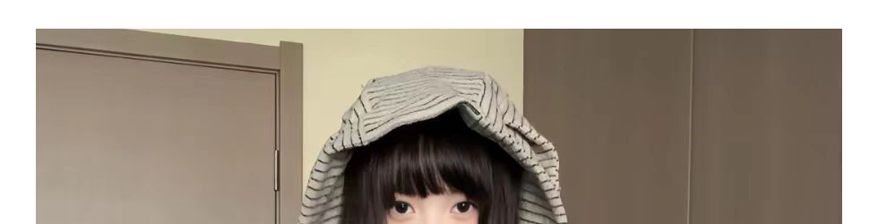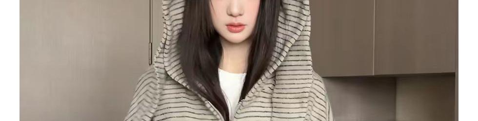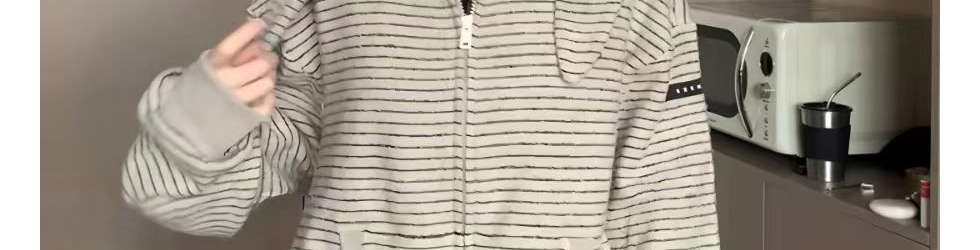 Retro striped hoodie with bunny ear detail. Loose fit, cozy and casual for autumn.