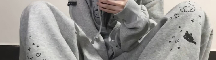 Hooded sweatshirt with bunny ears and matching pants. Loose fit, cozy and playful for autumn.