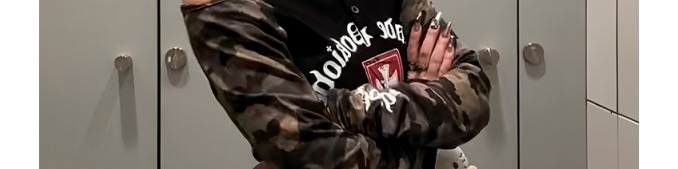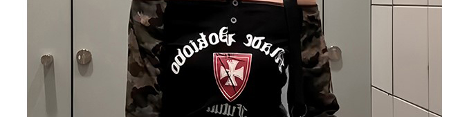 Y2K baddie-inspired off-shoulder T-shirt with camo sleeve design. Slim fit for an edgy, confident vibe.